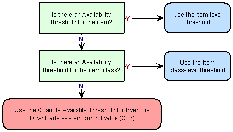 Availability threshold: The system generates an inventory download trigger record whenever inventory or reservation activity affects the item/SKU’s available quantity as follows: