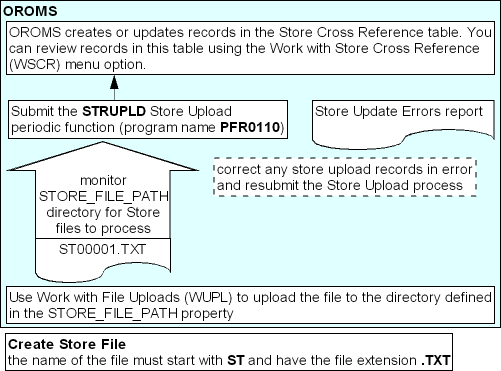 Use the Work with File Uploads (WUPL) menu option to upload the Store file to the Order Management System application server.