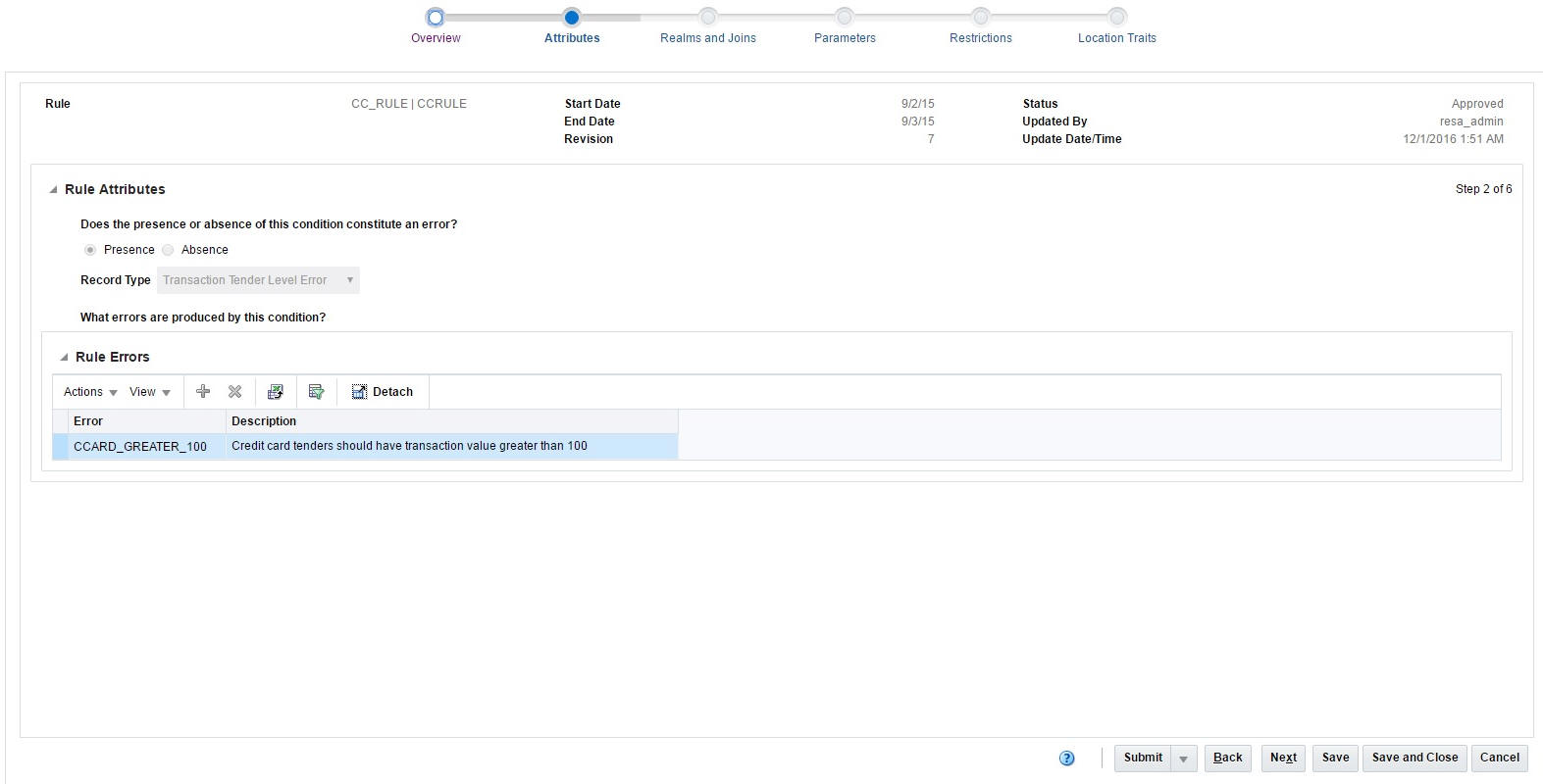 Rule Errors | You can choose to associate any predefined errors with the rule. You can view details about all errors by clicking the Error Details button. |
