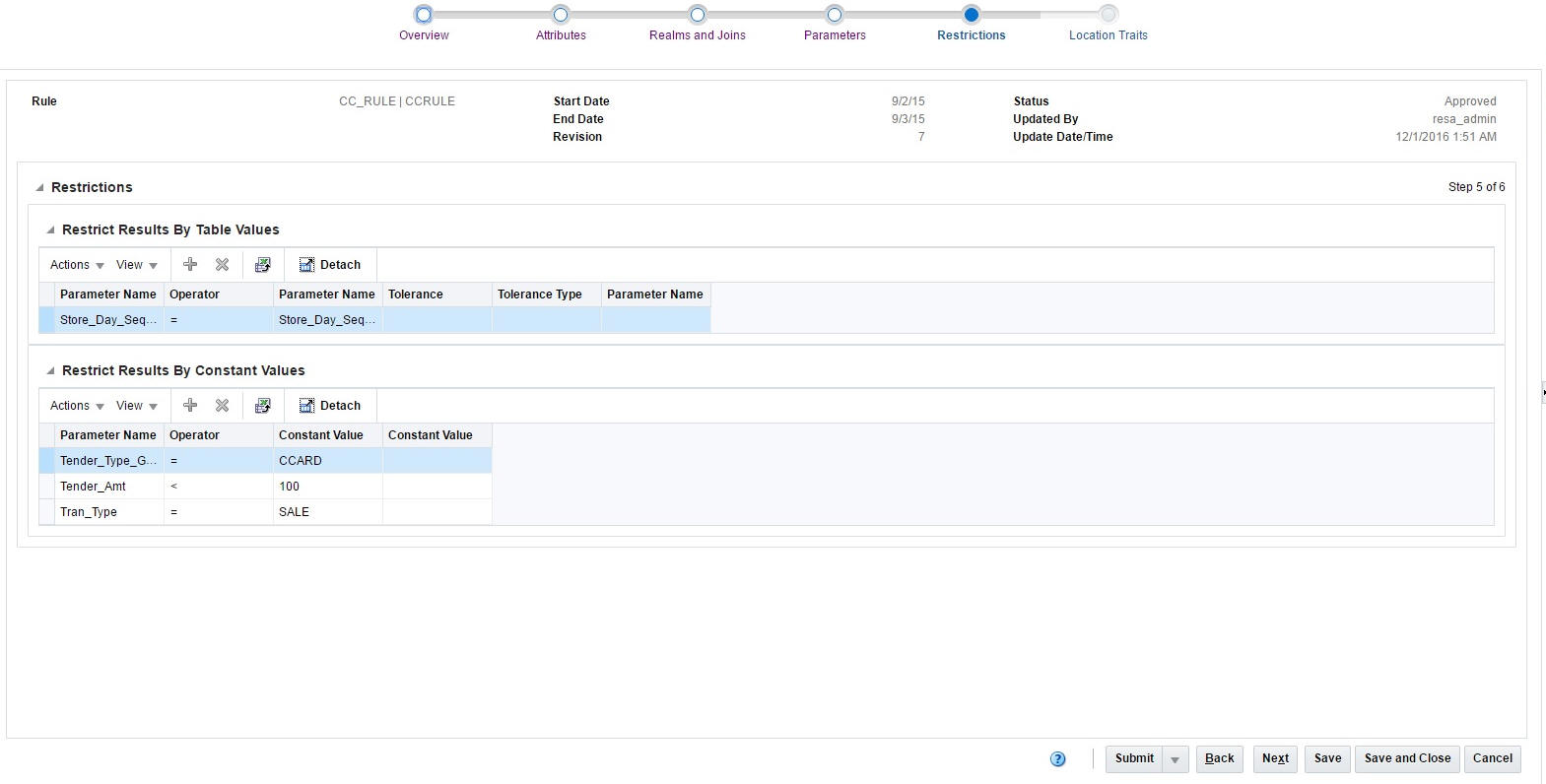 As a retailer, you may want to supplement the validation built into ReSA by defining your own audit rules. You can define these rules based on transaction data or totals using the Rule Definition module of ReSA.Because rules are associated with specific errors, you must define the errors and their impacts before you create the audit rules you need. These definitions can disable exports to the impacted system until all errors concerning the system are corrected, or they can disable the export of a particular transaction until it is corrected based on the option selected.When you create an audit rule, it is initially in the Worksheet Status. You can view, run, modify, and test the rule. Errors created by rules in Worksheet Status are stored in the Error Worksheet table. Once you are satisfied that the rule works correctly, you can submit it and then later approve it.Rules are executed each time you choose to run the re-total or the audit process using the ReSA user interface.