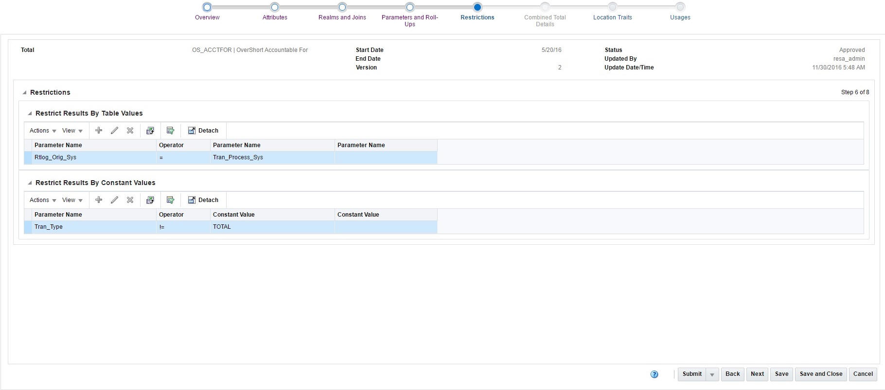Each total definition is assigned a revision number because updates to the total definitions are saved as new revisions and the existing definition record is not updated. This allows you to maintain a full audit trail and ensures that if an export is restarted after the total definition has changed, the system still has the total definition of the original export.