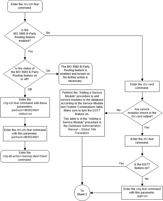 Figure A-1 Activate the MO SMS B-Party Routing Feature- Sheet 1 of 3