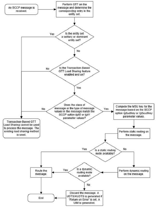 Transaction-Based GTT Load Sharing allows messages with the same transaction parameters (TCAP, SCCP, MTP, or ENHMTP parameters) to be routed to the same destination within an entity set. An entity set is a group of entities that are used to determine the proper destination of a post-GTT message. This group of entities can be one of the following: