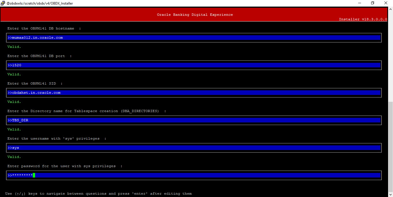 Password for existing OBDX schema |