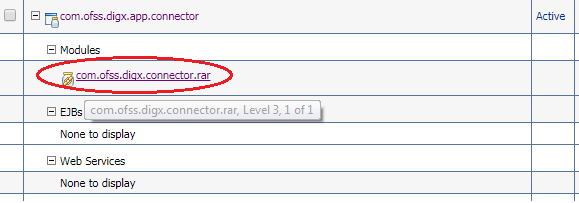 - Expand by clicking ‘+’ icon present in front of com.ofss.digx.app.connector application as shown below