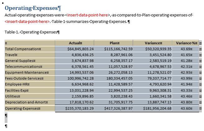 埋め込みコンテンツと空白の段落マーカーを選択すると、同じ方法で、Wordを使用して、上または下のテキスト行と共に表を選択します。