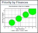 The chart displays the Risk or Priority on Y-Axis for the projects that qualify the filter criteria and Finances on X-Axis.