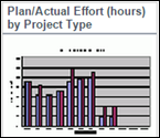 Project Effort Chart by Project Type, or by Project Methodology, or by Organization, or by Alignment, or by Classification