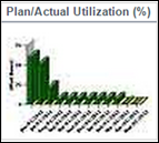 The chart displays Heat map by project. This chart is associated with PMO module, thus if PMO feature is not used, this might not be available. Both plan and actual % are always displayed. Display can be configured for daily or monthly.