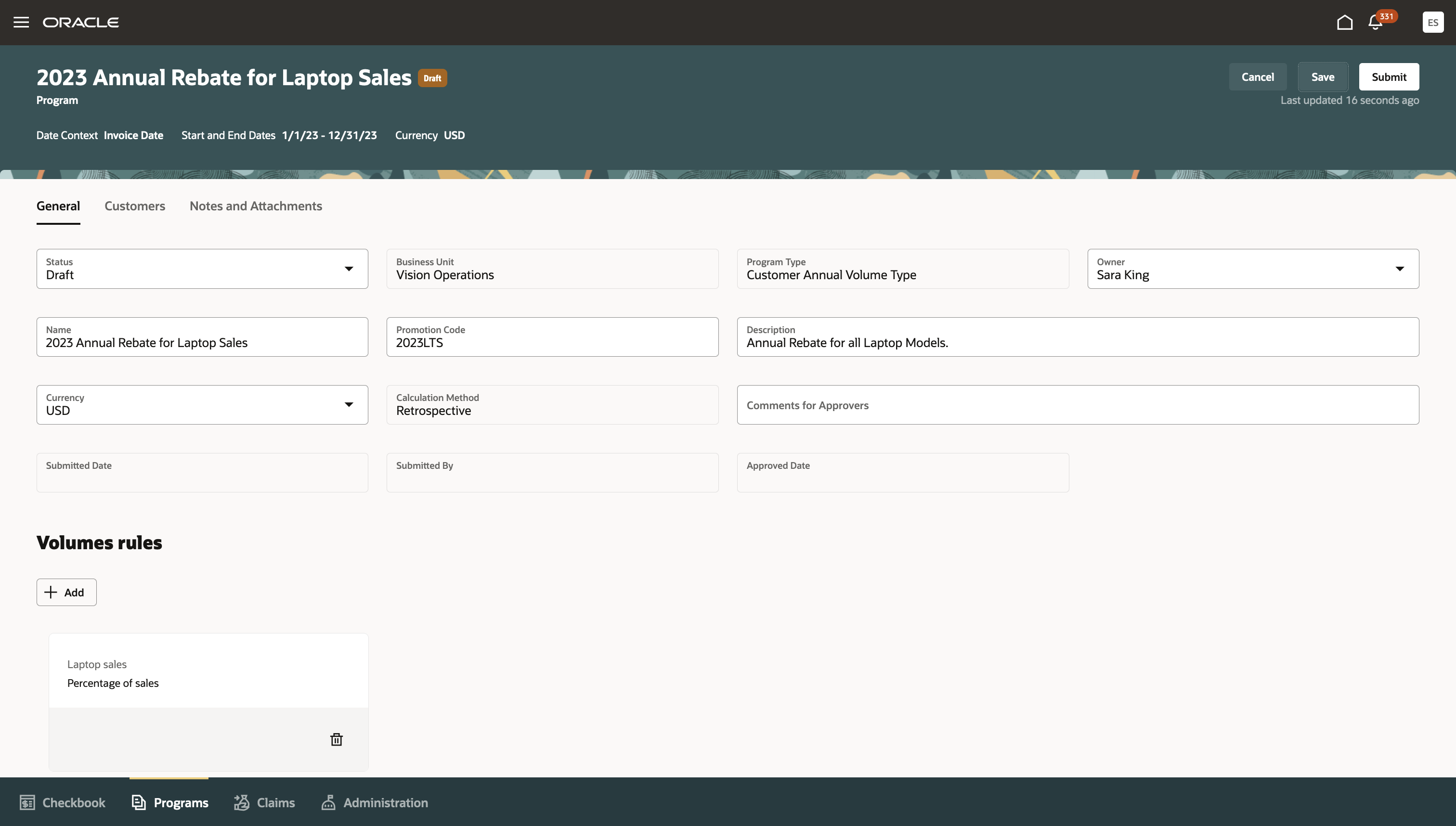 | 2024年5月6日 | チャネル収益管理 | BPMワークフローによる顧客プログラムの承認 | 文書の更新。機能のオプトイン失効の変更。 |