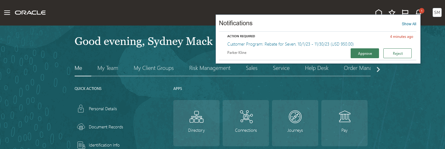 - 「設定および保守」作業領域で、「チャネル収益管理」機能領域の「「BPMワークフローへの承認待ちの移行」プロセスの実行」タスクに移動します。