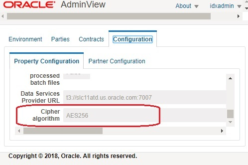Admin view application at the Configuration >> Property Configuration page enter cipher algorithm value has AES256.