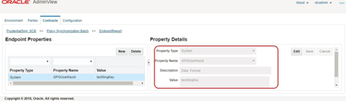 Admin view application at the Notification Endpoint >> Endpoint Properties page, select System type property and property name has GPGUserKeyId and enter the property value has sender public key name (This setting is used to encrypt the notification report xml file with sender public key).
