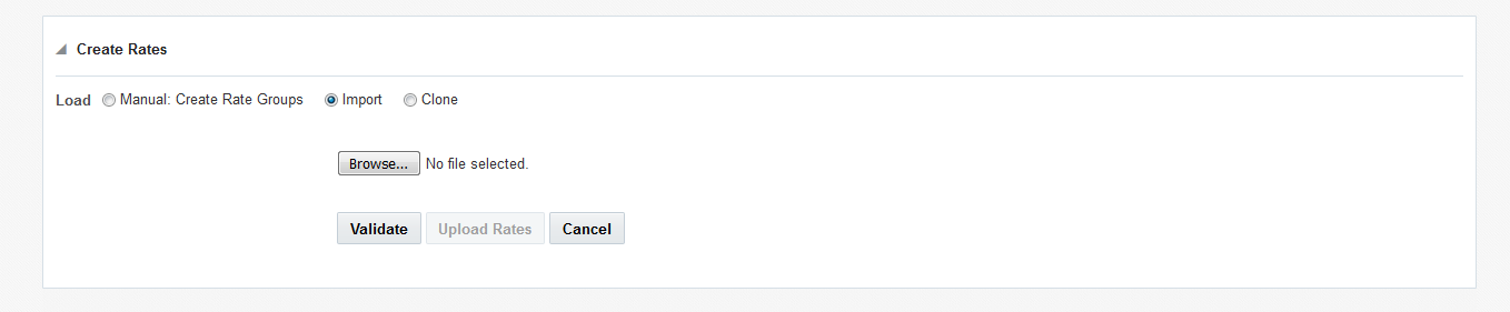 There are three methods to create or load Rate Groups, one of which should be selected by the associated radio button: