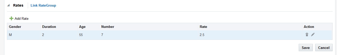 When creating rate groups, enter the mandatory fields with valid information and click Create. The Rates pane is displayed below the current pane.