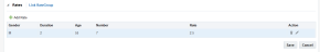 The Rates pane allows the user to enter Rates. All fields in this section are editable. The following columns will be available in the grid for data entry in order from left to right as listed below:
