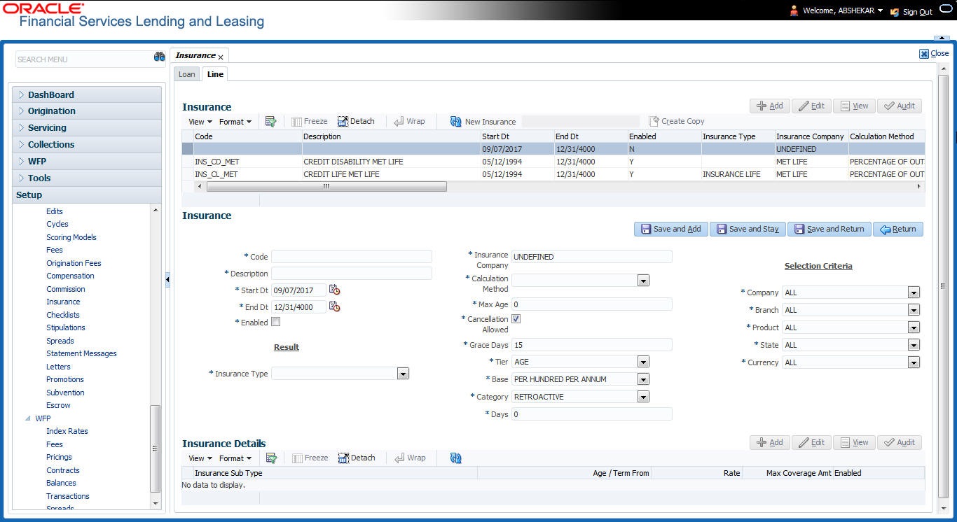For more information on how OFSLL handles Usage based leasing, refer to Appendix - Usage Based Leasing chapter and for Rental based leasing, refer to ‘Rental Agreement’ section in Lease Origination User Guide.