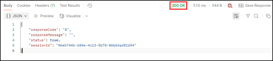 to indicate a successful session. - requestId: Specifies the value obtained in Create a Session for the User.