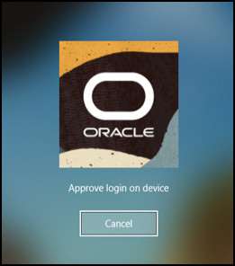 An Approve login on device message will appear as below. A push notification will be sent to Oracle Mobile Authenticator on your mobile device. On the mobile device select Allow.