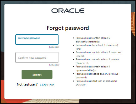 Note: If the Administrator has not configured the password forgotten and reset URL’s in Oracle Advanced Authentication, then the Forgot Password and Change Password links will not be visible to user when logging in.
