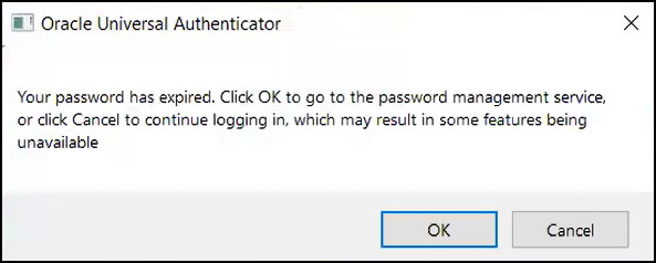 When a user attempts to login to their device using Oracle Universal Authenticator, a user may need to change or reset their Oracle Access Management password, for example, if they have forgotten their password, or if their password has expired or is about to expire.