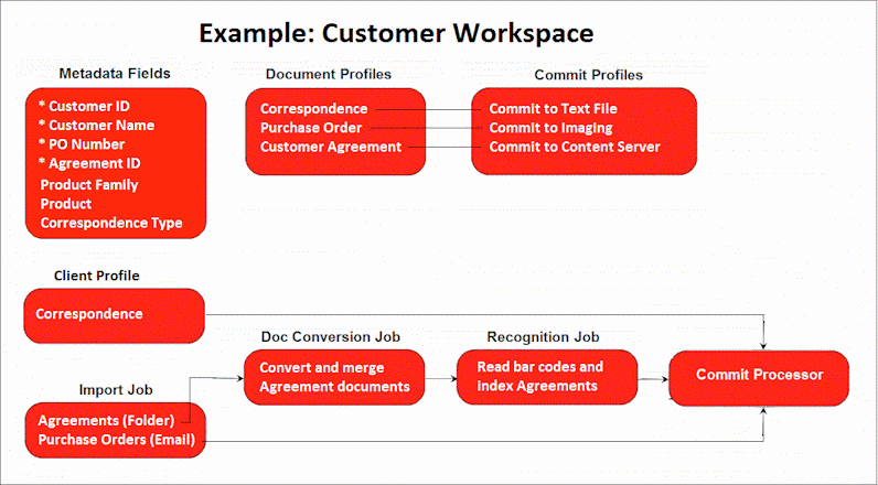 コミット・プロセッサでは、コミット・プロファイルを実行して、指定された場所またはコンテンツ・リポジトリにバッチ・ドキュメントを自動的に出力し、その後ワークスペースからバッチを削除します。サポートされるドキュメントおよび添付の出力形式には、複数ページのTIFF、イメージのみのPDFおよび検索可能なPDFがあります。コミット・プロファイルは、ドキュメントとメタデータの出力方法を指定し、メタデータ・フィールド・マッピング、出力形式、エラー処理の指示およびコミット・ドライバの設定を含みます。「コミット処理の概要」を参照してください。