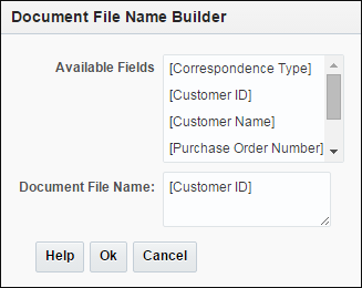 オプションで、「メタデータ・フィールド値に基づいてドキュメント・ファイルに名前を付ける」フィールドを選択して、選択した1つ以上のメタデータ・フィールドの値に基づいてファイルに名前を付けます。このフィールドを選択しない場合、キャプチャでは、内部バッチID、アンダースコアおよび数字の識別子を含むデフォルト・ネーミング・スキームを使用して、ファイルに名前が付けられます。「使用可能なフィールド」リストから含めるメタデータ・フィールドを選択し、「選択したフィールド」リストに移動します。
