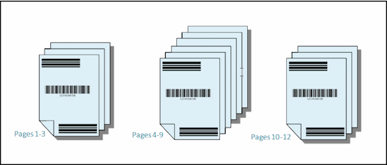 ジョブの選択されたドキュメント編成方法に基づいて、認識プロセッサはバッチ内のページを個々のドキュメントに分割します。