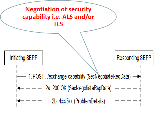 The security capability negotiation allows the SEPPs to negotiate which security mechanism to use for protecting NF service related signalling over N32. There shall be an agreed security mechanism between a pair of SEPPs before conveying NF service related signalling over N32.