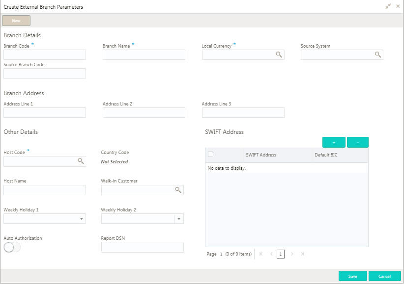 ● BIC Clearing Code: By default, this is disabled. If enabled, indicates the National ID in the BIC plus file is the clearing code. During upload of clearing codes from BIC plus file, the records belong to countries against which this box is selected.