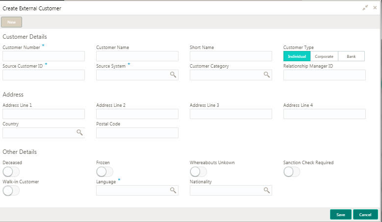 ● Real Customer Name: Based on the Real Customer Number selected, information is auto-populated.