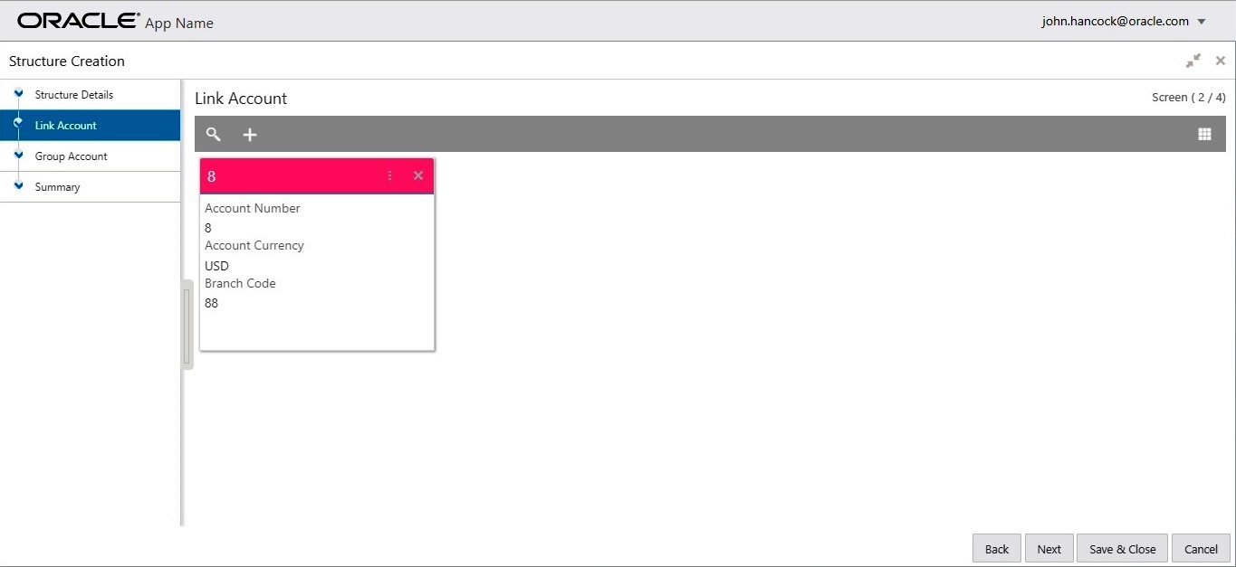While creating the structure, the next step is to add accounts into the structure from the existing list of accounts in DDA for that particular customer.