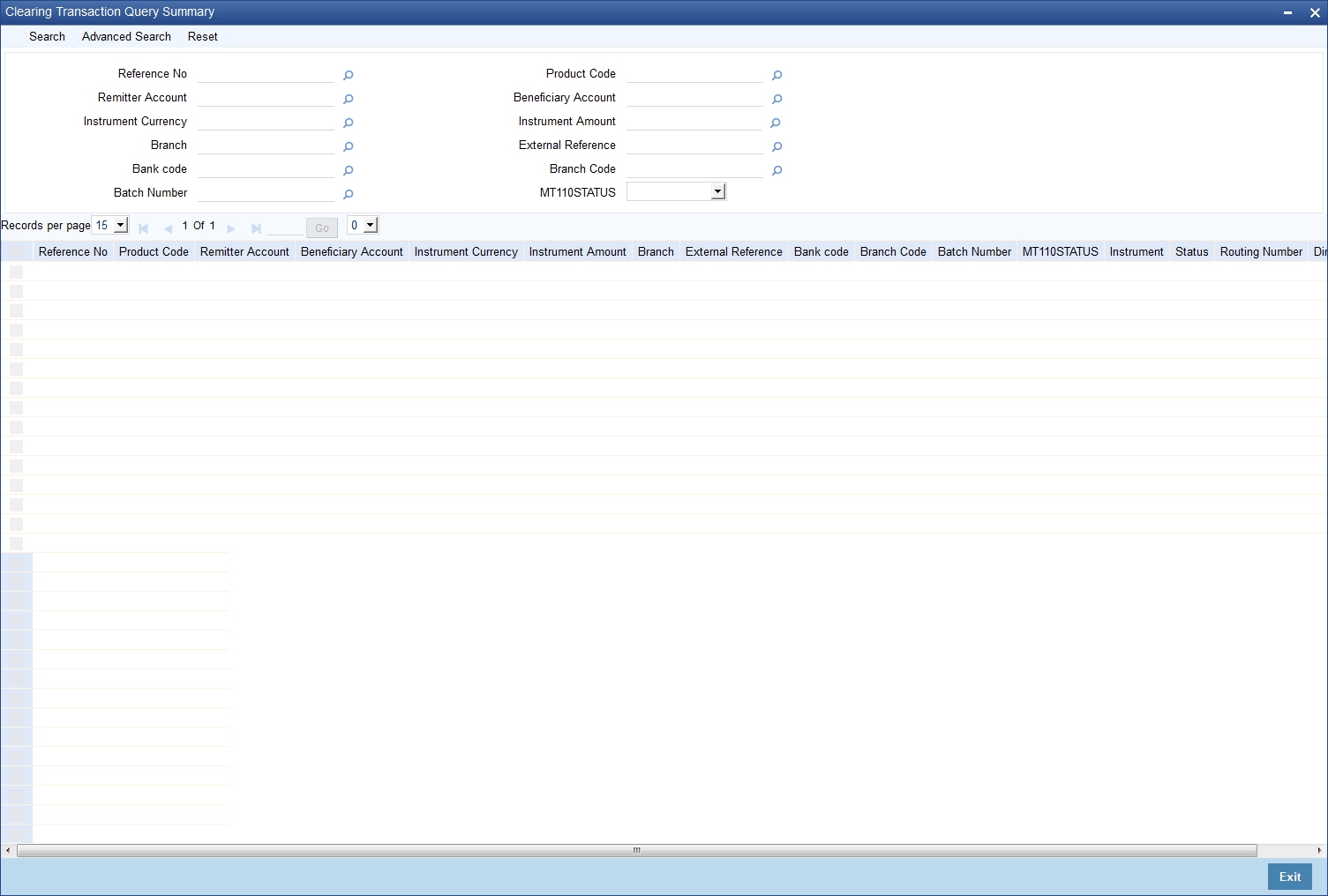 You can view the processed clearing records through the Clearing transaction screen. You can reverse a transaction or input a transaction through this screen. Also, you can query/view the list of transactions with a particular reconciliation status.