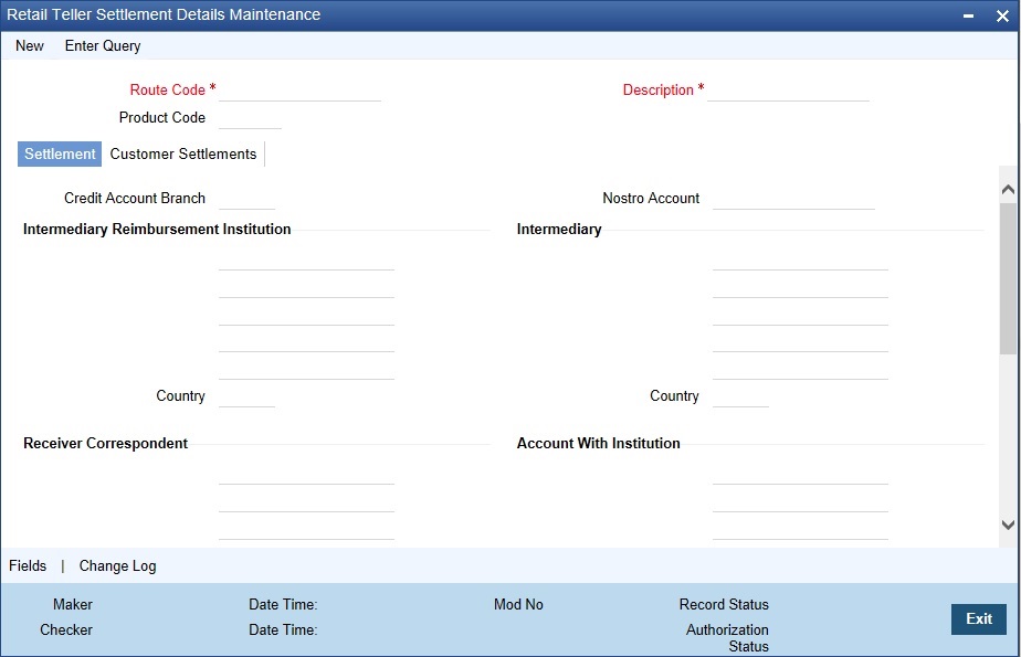 This screen contains fields that explore possible routes of the transfer. Depending on the type of transfer you are initiating and on the number of banks involved in the transfer, you can enter details of the parties involved in the transfer route.