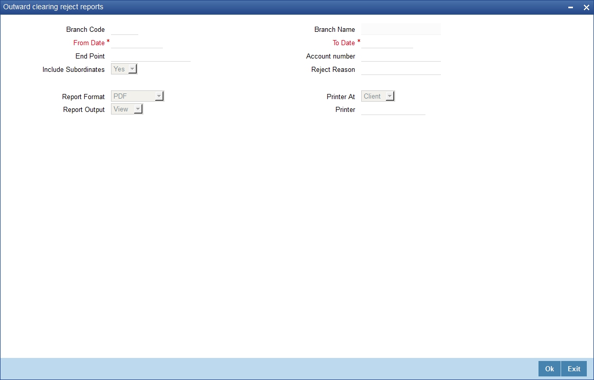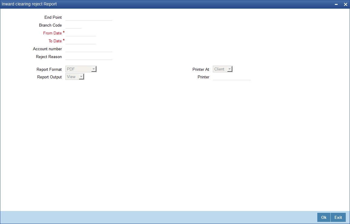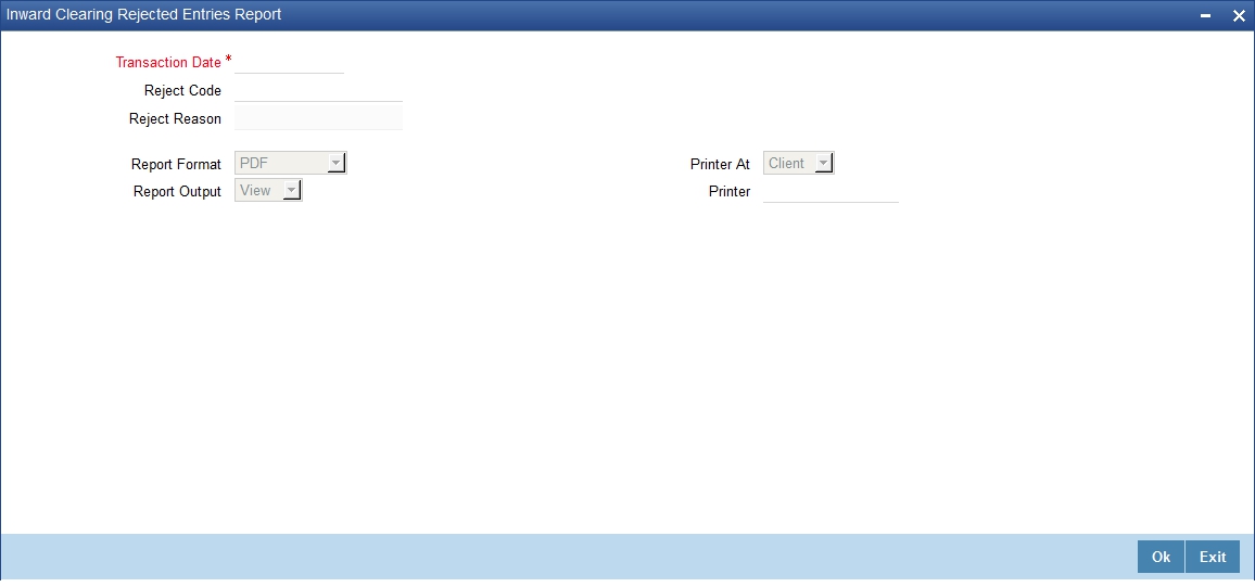 Specify reject code of the inward clearing extract for which you wish to generate report, from the adjoining option list.