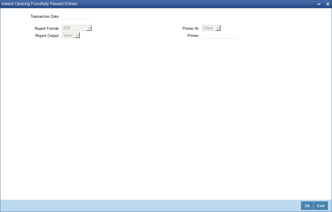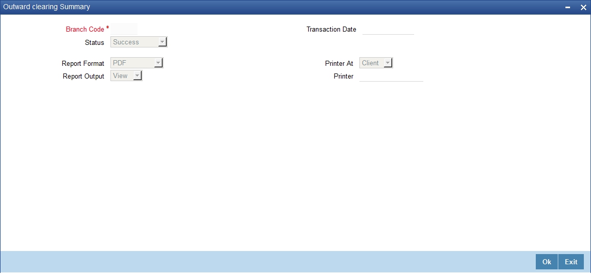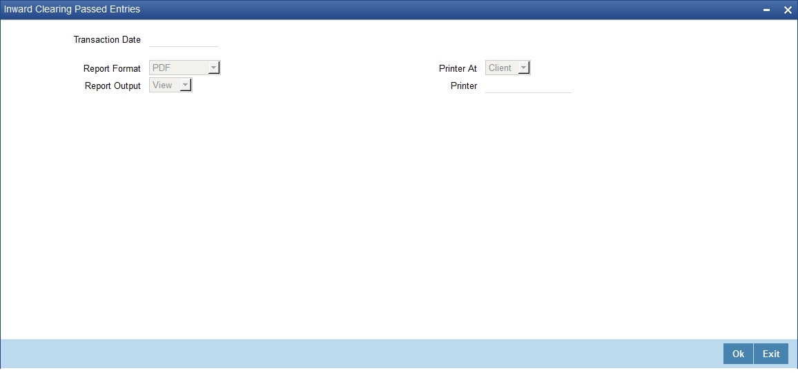 Click ‘OK’ button to generate the inward clearing extract report, click ‘Exit’ to return to the Reports Browser.