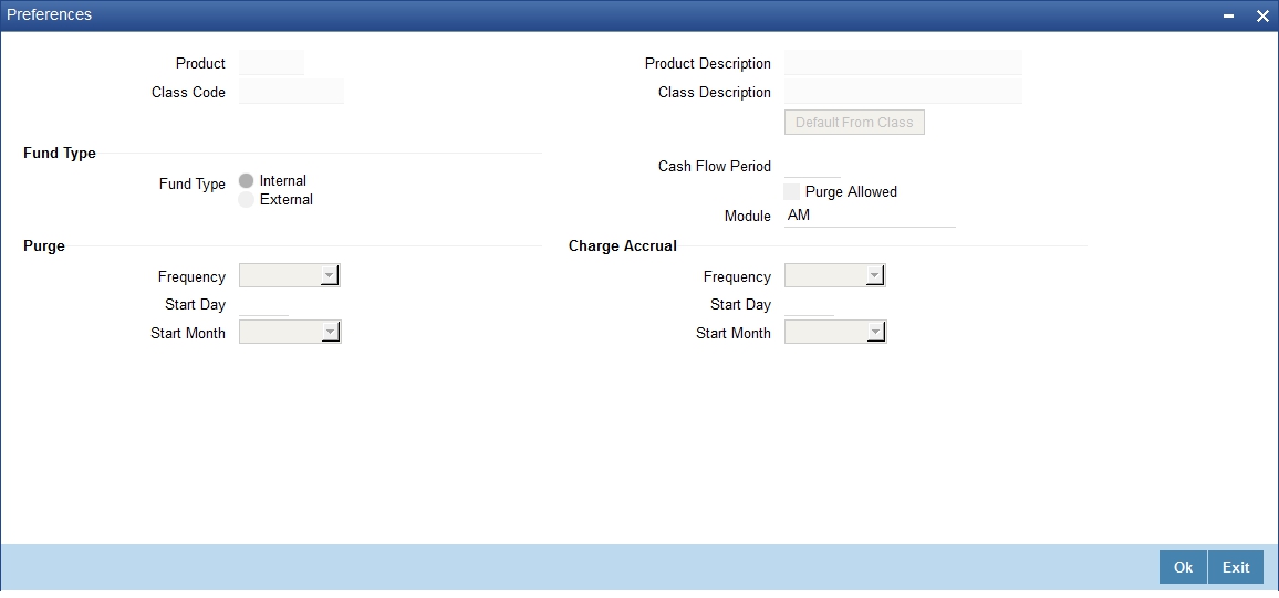 To associate a fund preference class with a product, you need to click ‘Default From Class’ from the ‘Fund Product Preferences’ screen. A list of the fund preference classes that you have defined under the fund preference class of asset management will be displayed. Choose the fund preference class to be associated with the product from the option list.