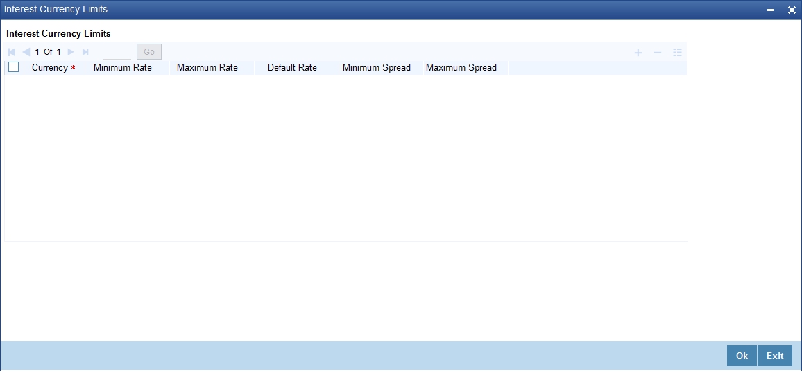 The following ‘Interest Details’ screen will be displayed, when you click ‘Interest’. Specify values in the fields and click ‘Ok’ button.