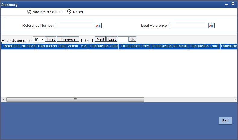 Click the ‘Exit’ or ‘Cancel’ button to return to the ‘Corporate Action For Funds’ screen.