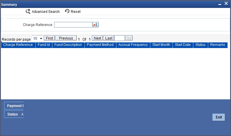 The details of the charges that have already been liquidated are available. Click the tab titled 'Payment Details" from the ‘Fund Charge Definition’ screen.