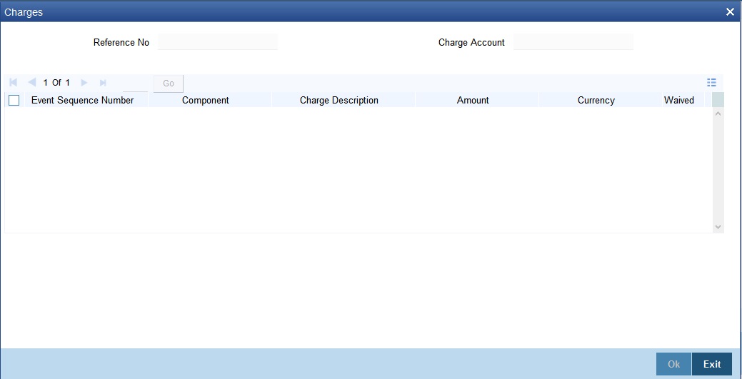 The charges that you have specified for the instrument, branch and currency combination that you have chosen for the transaction, in the ARC Maintenance, are applied by default.