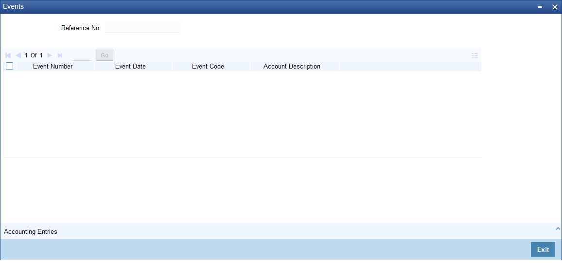 For maintaining event details in the ‘Events’ screen, click the ‘Events’ button on the ‘Interface Clearing Details’ screen..