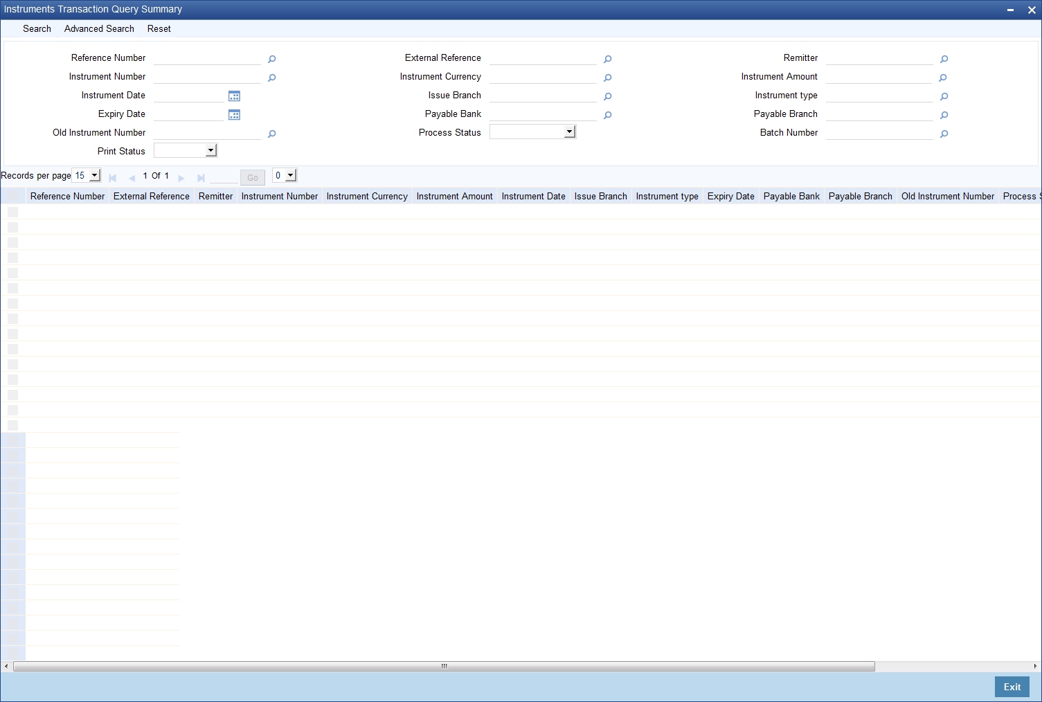 The Instruments module of Oracle FLEXCUBE provides for the maintenance of appropriate reference information, which would enable entry of instrument transactions from an Oracle FLEXCUBE, and also enable you to view and enrich transactions that have been entered through a Branch.