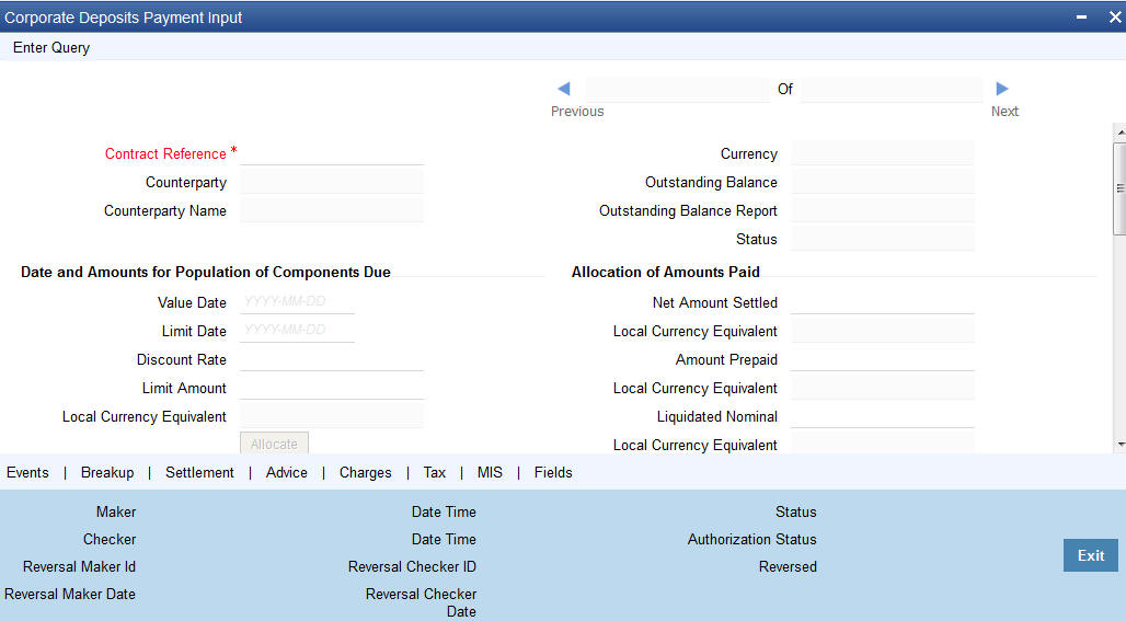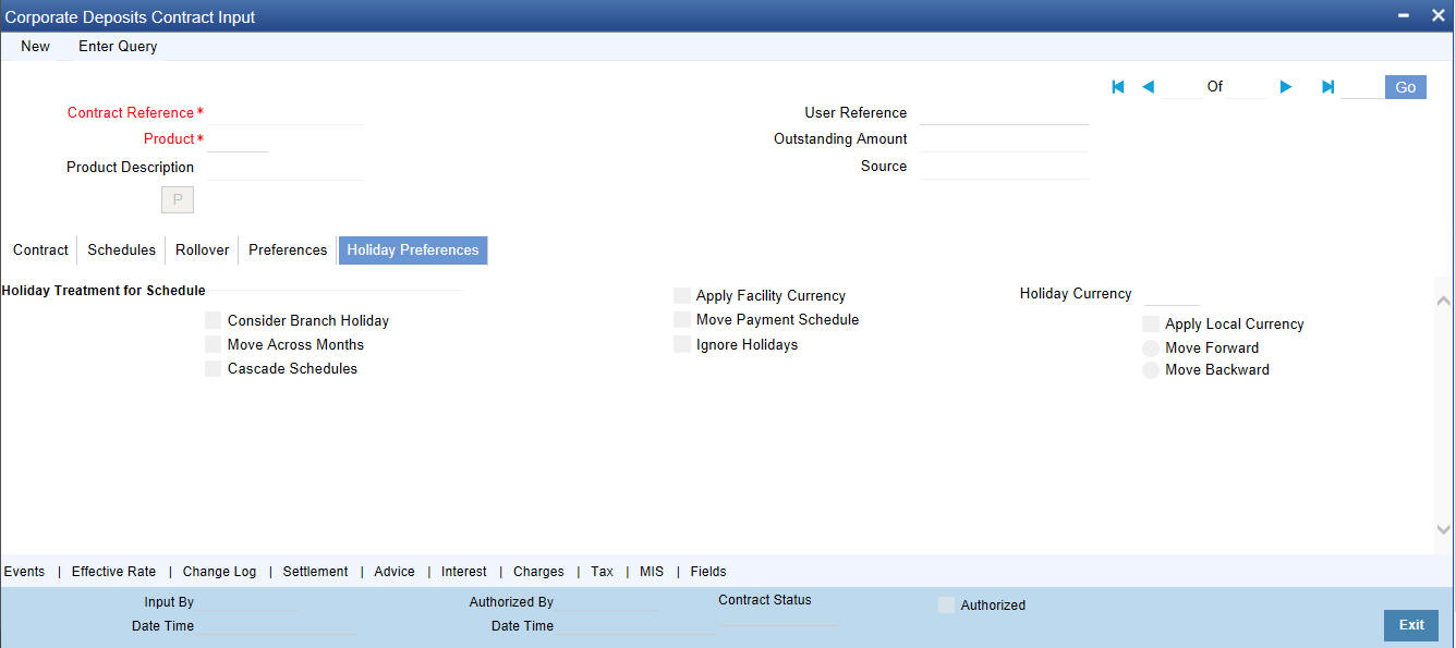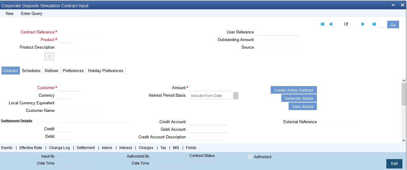 For further details on ‘Corporate Deposits Contract Input’ screen, refer ‘Specifying Deposit Details’ section in the ‘Capturing Details of Deposit’ chapter of this User Manual.