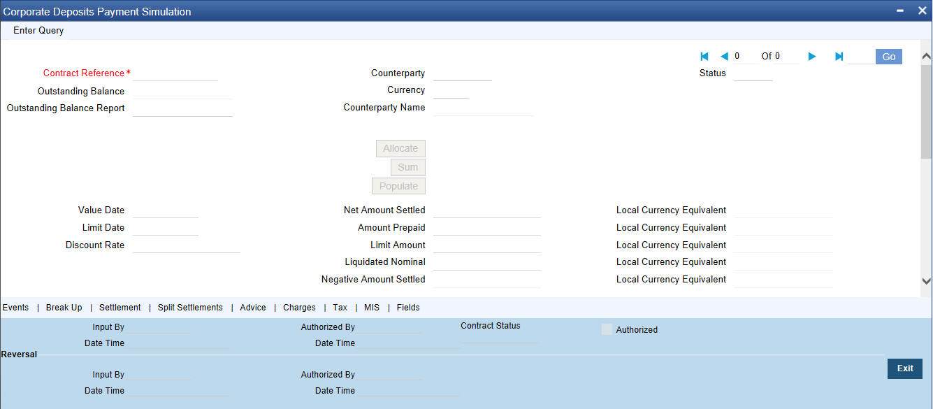 The ‘Corporate Deposits Payment Simulation’ screen is similar to ‘Corporate Deposits Payment Input’ screen.