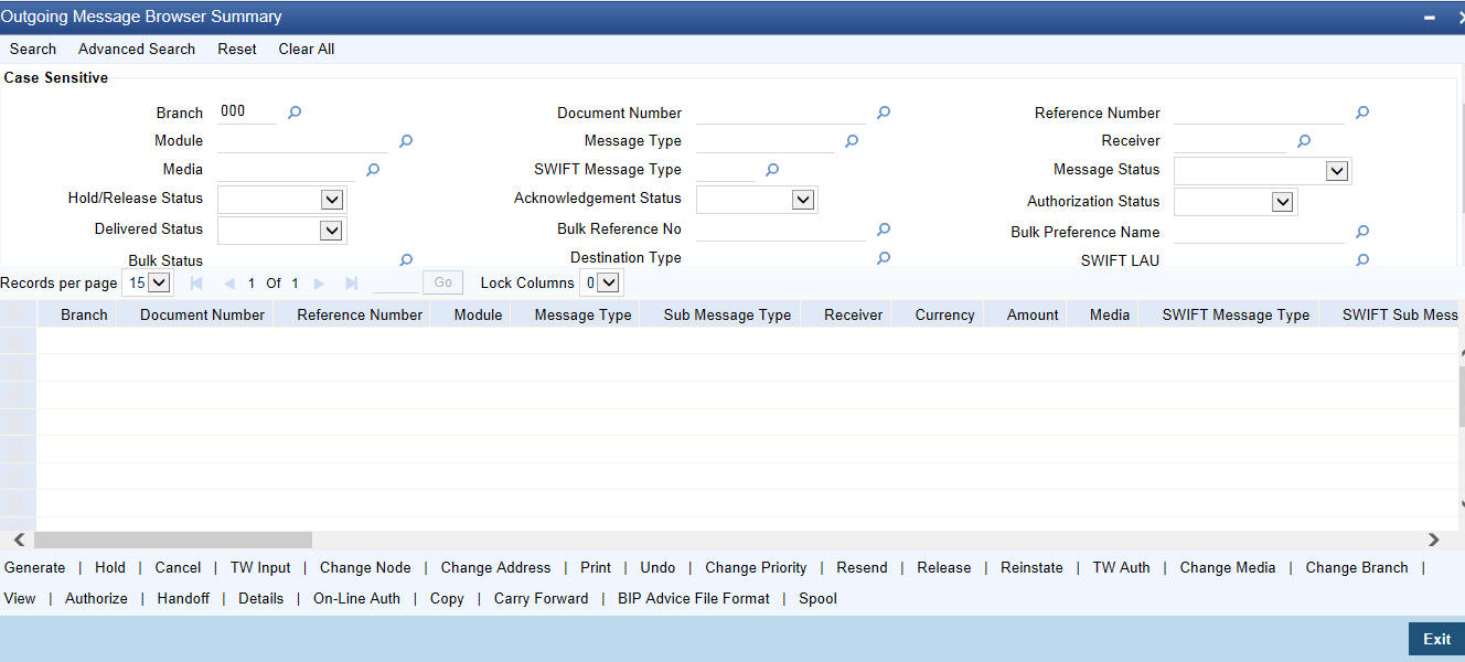 For further details on ‘Outgoing Message Browser’ screen, refer ‘Manual Generation of Outgoing Messages’ section in the ‘Processing Outgoing Messages’ chapter of the ‘Messaging System’ User Manual.