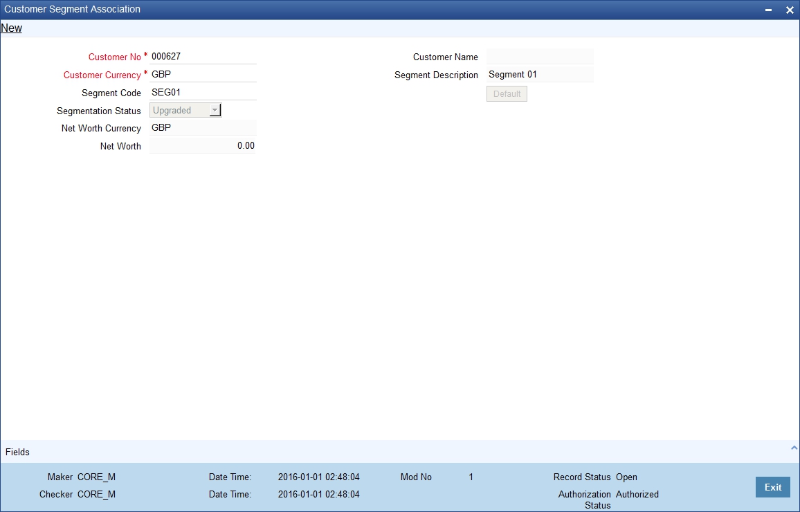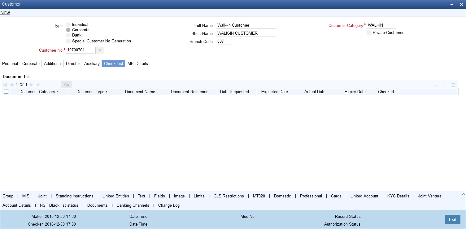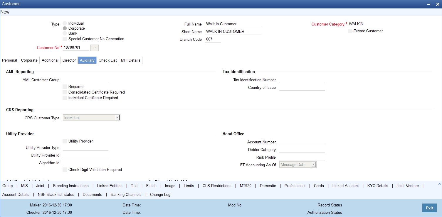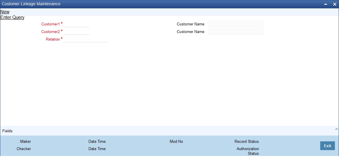 In the ‘Customer Maintenance’ screen, you maintain various personal and business details of the customers of your bank.