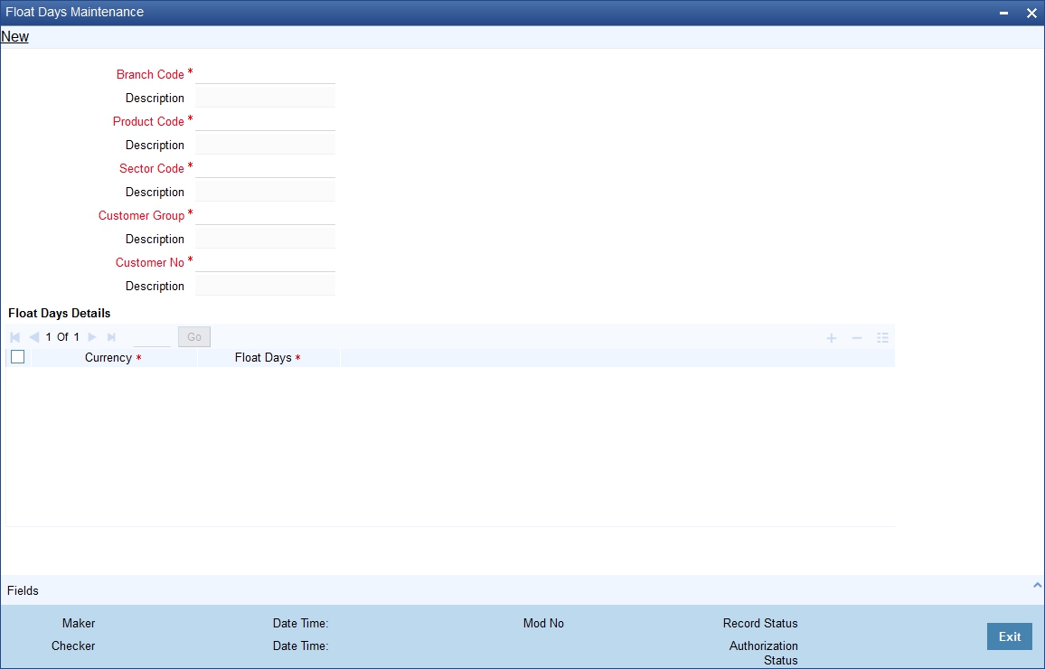 You can create user defined fields using the ‘User Defined Fields’ screen. To invoke this screen, click ‘Fields’ tab in the ‘KYC Maintenance’ screen.