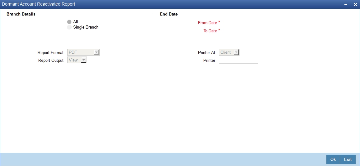 Specify a valid account number for which you want to generate the report from the adjoining option list, if you have selected 'One'.