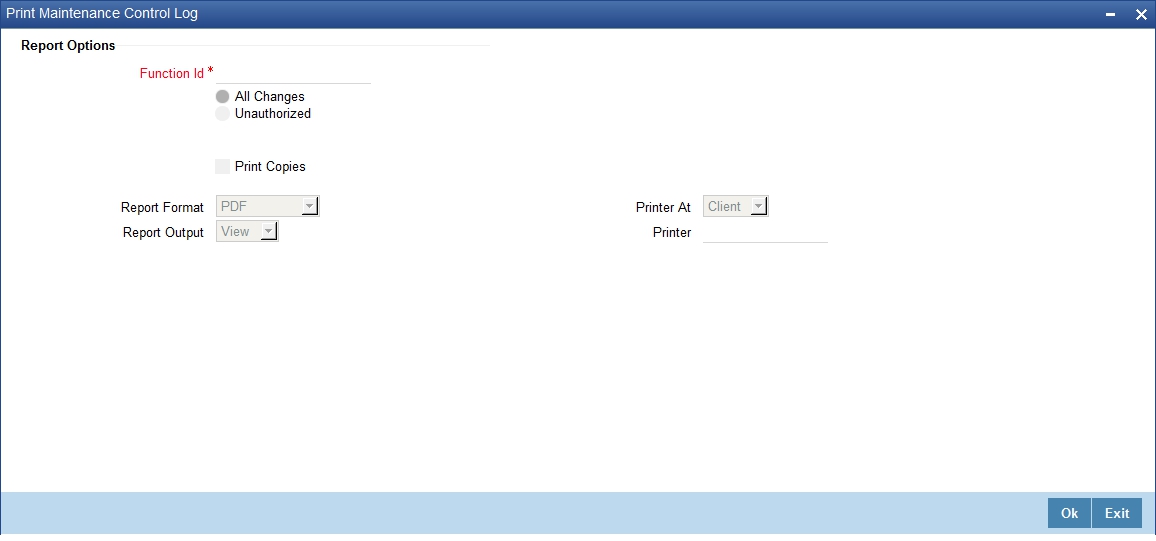 Specify a valid Function ID for which you want to generate the report from the adjoining option list.